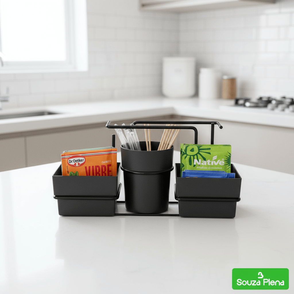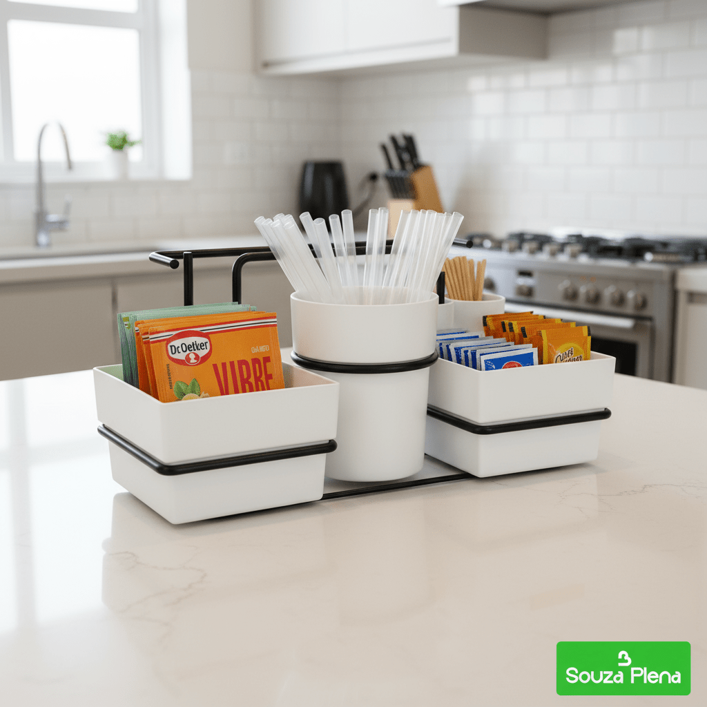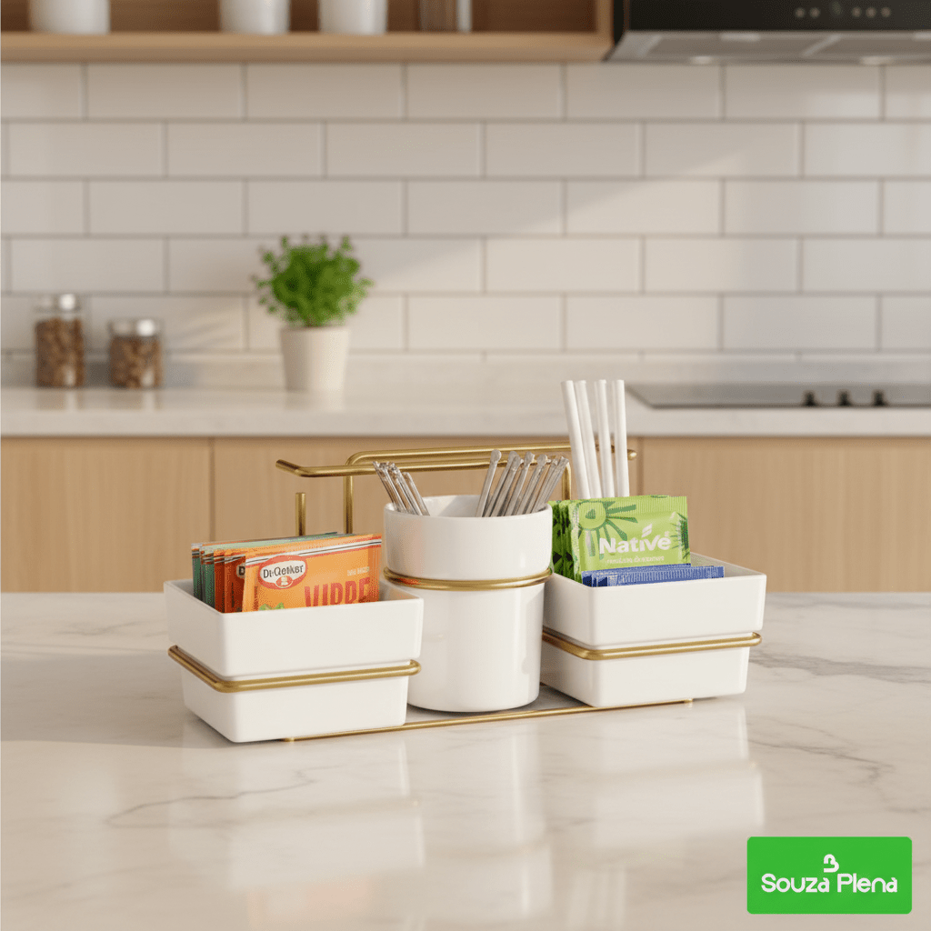 O Organizador Elegance Café & Chá™ é a combinação perfeita de praticidade e sofisticação. Ideal para armazenar sachês, mexedores e guardanapos, ele mantém tudo à mão com um visual moderno e encantador.