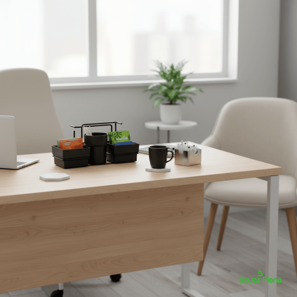 Design elegante e funcional, perfeito para bancadas ou mesas de café