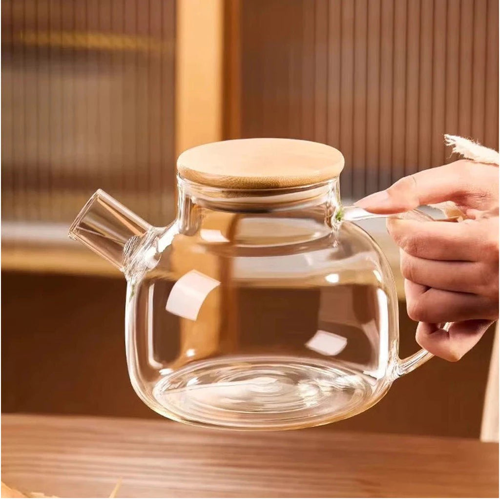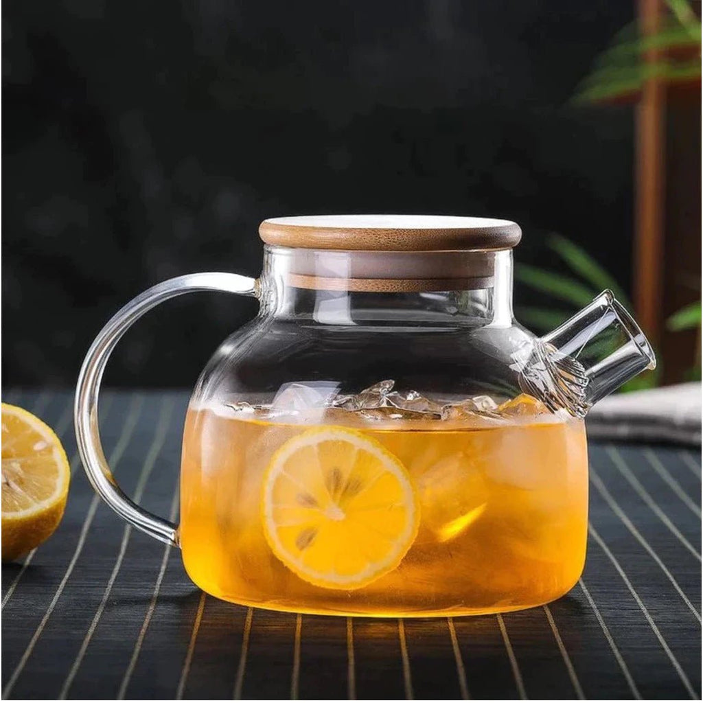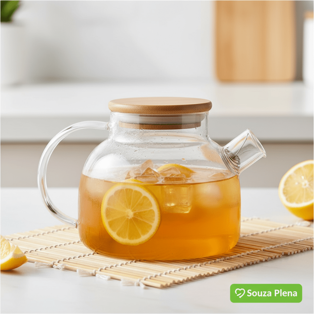 ✔️ Vidro Borossilicato Resistente – suporta variações térmicas, é leve, durável e não mancha ✔️ Tampa de Bambu Natural – acabamento sofisticado com um toque sustentável ✔️ Capacidade de 1 Litro – ideal para chá, café, infusões e muito mais ✔️ Design Minimalista e Transparente – veja o conteúdo em tempo real e decore sua cozinha com estilo ✔️ Bico com filtro em aço inox – praticidade ao servir, sem resíduos indesejados